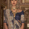 Navy traditional silk saree crafted with print work. The saree comes with a matching blouse.