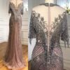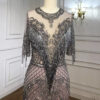 Nude pink heavy beaded tassel Evening Gown Dress, beautifully hand crafted together with embroidered beaded work patterns all over the dress.