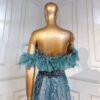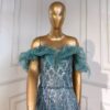 Off The Shoulder Sequinned Evening Dress, beautifully hand crafted together with embroidered beaded work all over the dress.