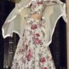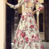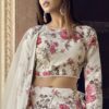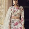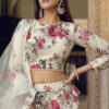 Off white crush silk floral print lehenga choli, made with lace work. Comes with a matching silk lehengacholi and georgette dupatta.