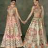 Of white embroidered designer Lehenga choli, made with thread zari sequin work. Comes with matching top, skirt and net dupatta.