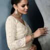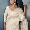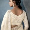 Off white embroidered wedding saree, embellished with sequin stone and thread work enhanced by fancy tassels. The saree comes with a matching contrast blouse.