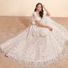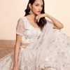 Off White net bridal lehenga choli crafted with heavy work sequin and thread dori work. Comes with a matching choli and net dupatta.