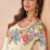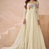 Off white silk embroidered anarkali gown, made with sequence stone and embroidered work. Comes with matching top and net dupatta. Does not come with trouser.