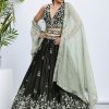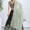 Olive Green floral sequinned wedding lehenga Choli in raw silk delicately made with, thread, sequin, stone and diamond work. Comes with a matching choli and dupatta.