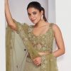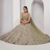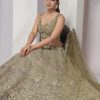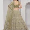 Olive green heavy embroidered bridal lehenga choli, made with thread, sequins and zarkan work. Comes with matching soft net lehenga, choli and dupatta.