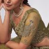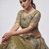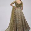 Olive green heavy embroidered bridal lehenga choli, made with thread, sequins and zarkan work. Comes with matching soft net lehenga, choli and dupatta.