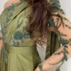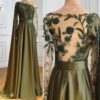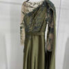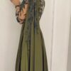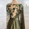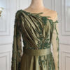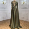 Dark Olive Luxury A-Line Heavy Beaded Evening Dress, beautifully hand crafted together with embroidered beaded work patterns all over the dress.