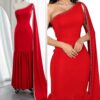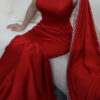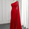 One shoulder drape sequin embellished evening party dress, beautifully hand crafted together with sequins all over the dress.