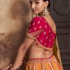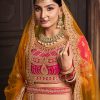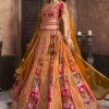 Orange banarasi silk heavy embroidered bridal lehenga choli, made with thread and sequin work. Comes with matching lehenga, choli and dupatta.