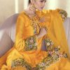 Orange embroidered sangeet sharara suit, made with thread zari and sequin work. Comes with matching top, bottom and dupatta.