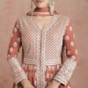 Orange georgette anarkali lehenga suit made with thread zari sequin work. Comes with matching top, skirt and dupatta.