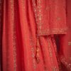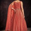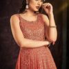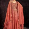 Orange georgette embroidered anarkali suit crafted with thread and sequins work. Comes with Top, bottom & dupatta.