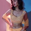Orange sangeet party wear lehenga choli, embroidered with thread & resham sequence work. Comes with matching choli, lehenga and dupatta.