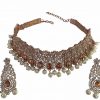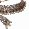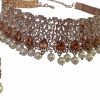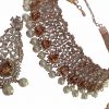 Orange SERENA Crystal Necklace Set. Gold based finish filled with american diamond and orange stones with pearl drop hanging beads. These earrings with set are for pierced ears only.