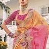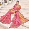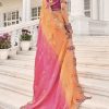 Saree Fabric Orange To Rani Natural Crepe Jacquard Saree With Jari ,Cut-Dana & Moti Heavy Work 5.5 Meter. Blouse Pure Silk 1 Meter Unstitched.
