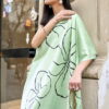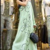 Pale Green retro print satin silk saree crafted with all over print design. The saree comes with a matching unstitched blouse.