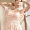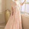 Pale pink silk embroidered anarkali gown, made with thread zari sequin work. Comes with top only. Bottom pant and dupatta does not come with this gown.