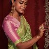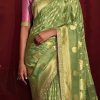 Parrot green banarasi silk embroidered wedding saree, designed with thread and intricate border work. The saree comes with a matching blouse.