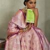 Saree : Satin Silk With Banarasi Zari Woven With Butta Concept & Rich Pallu, Meenakari In Border, Butta & Pallu