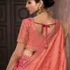 Peach banarasi silk heavy embroidered bridal lehenga choli, made with thread and sequin work. Comes with matching lehenga, choli and dupatta.