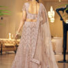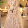 Peach embroidered net party wear lehenga choli made with thread & stone sequins work. Comes with matching choli and dupatta.