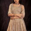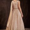 Peach georgette embroidered anarkali suit crafted with thread and sequins work. Comes with Top, bottom & dupatta.