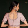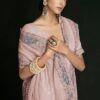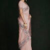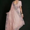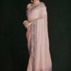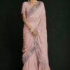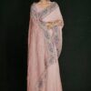 Peach georgette lucknowi embroidered wedding saree crafted with sequin & dori work. Comes with matching blouse.