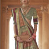 Peach & green traditional silk saree crafted with print work. The saree comes with a matching blouse.