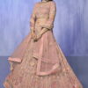 Peach heavy embroidered bridal lehenga choli, made with thread and zarkan work. Comes with matching lehenga, choli and net dupatta.