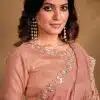 Peach jacquard georgette designer saree crafted with sequin and cord embroidery work. The saree comes with a unstitched matching Bangalori silk blouse.