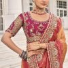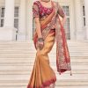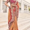 Saree Fabric peach crepe jacquard saree With Jari, Cut-Dana & Moti Heavy Work 5.5 Meter. Blouse Pure Silk 1 Meter Unstitched.