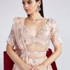 Peach organza floral embroidered bridal lehenga Choli, delicately made with, thread, sequin, stone and diamond work. Comes with a matching choli and dupatta.
