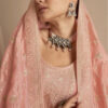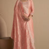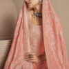 Peach Silk Palazzo Pant Suit made with thread and zari patch border work. Comes with Top, bottom and dupatta.