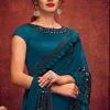 Peacock Blue Party Wear Saree, designed with sequin embellishment with intricate border work. The saree comes with a matching blouse.
