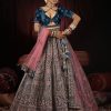 Peacock velvet embroidered bridal lehenga choli, delicately crafted with, sequin, stone and diamonds. Comes with a matching soft velvet lehenga, choli and net dupatta.