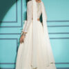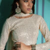 Pearl white georgette pleated lehenga choli, embroidered with thread resham sequence work. Comes with a matching choli and embroidered dupatta.