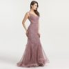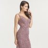 Pink Off The Shoulder Evening Dress Evening Dress is beautifully weaved together with beading, Sequinned,Crystal work patterns over the dress with bra padded. Empire waistline.