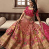 Pink banarasi silk bridal lehenga choli, crafted with heavy hand work silk zari, sequin and thread dori work. Comes with matching lehenga choli and dupatta.