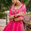 Pink banarasi silk embroidered bridal lehenga choli, designed with sequin, zari work, hand embroidered paired with matching embroidered banglori silk blouse and silk dupatta.