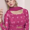 Pink bandhej print embroidered anarkali suit made with thread zari sequin work. Comes with matching top, bottom and dupatta.