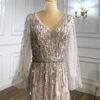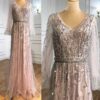 Pink Beaded Evening Gown Dress, beautifully hand crafted together with embroidered beaded work patterns all over the dress.