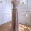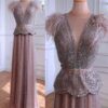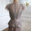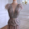 Pink Beaded feather sleeve Evening Gown Dress, beautifully hand crafted together with embroidered beaded work patterns all over the dress.
