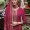 Pink chinon embroidered palazzo salwar suit, made with thread and sequin work at front and back of the kameez and pant. Includes top, bottom and dupatta.