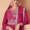 Pink chinon silk designer sharara Suit made with sequence stone and embroidered work. Comes with matching top, pant and dupatta.