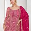 Pink chinon silk embroidered sharara suit, made with thread zari and sequin work. Comes with matching top, bottom and dupatta.