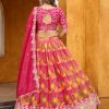 lehenga :- tabby silk print semi stitched upto 42(xl) size it will be stitched