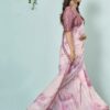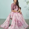 Pink crepe organza silk designer saree crafted with sequin and cord embroidery work. The saree comes with a unstitched matching soft taffeta blouse.