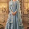 Pink Dola Silk Embroidered Anarkali Suit made with thread sequins and lace work. Comes with matching top and soft net dupatta.