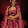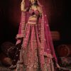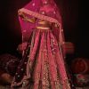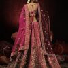 Pink embroidered bridal lehenga choli, delicately crafted with, sequin, stone and diamonds. Comes with a matching soft velvet lehenga, choli and double dupatta.